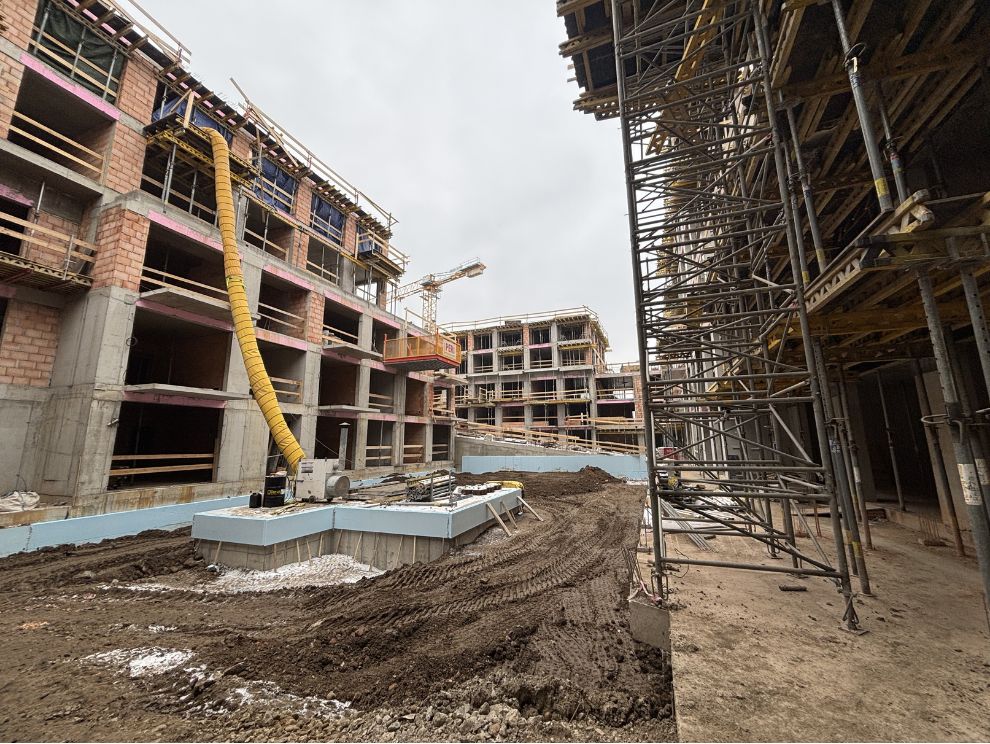 Každý rok se tak na stavbách řeší stejné otázky: při jaké teplotě a počasí se dá ještě pracovat a kdy raději počkat? Ani letos jsme se nevyhnuli mrazům a chumelenicím – a naším cílem je posouvat stavbu kupředu, ale ne za každou cenu. Cílem stavebních firem je dodržovat termíny, a naší prioritou je kvalita a dodržení technologických postupů. Proto náš stavební dozor pečlivě kontroluje každý krok a přísně hlídá, aby se nic neurychlilo na úkor kvality. Výsledkem je dobrá zpráva: jedeme podle harmonogramu. Ostatně, přesvědčte se sami v našem novém videu. Aktuálně nad stavbou pracuje šest jeřábů, jejichž počet se bude s postupující výstavbou snižovat.