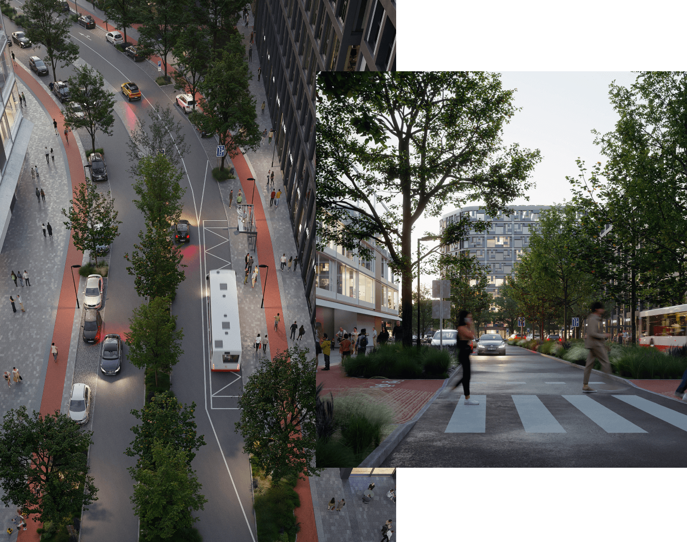 Klademe důraz na udržitelnou dopravu a kvalitní veřejný prostor. Díky podpoře veřejné dopravy a konceptu krátkých vzdáleností je pohyb po čtvrti rychlý, pohodlný a zároveň ekologický. Prioritou je bezpečný pohyb chodců a cyklistů – méně aut, více kol a čistší vzduch přispívají k příjemnému prostředí pro každodenní život. Pěší zóny a cyklostezky propojují celé území od severu k jihu i od východu k západu, snadno dostupná je MHD i vlakové spojení.